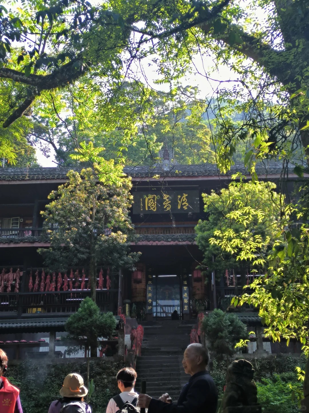Qingyin Pavilion, or the “Pavilion of Clear Sound,” is a sensory masterpiece. Two rivers, the Black Dragon and the White Dragon, meet here. The sound of the water rushing over the rocks is deafening yet musical. I stopped here to catch my breath and ate a simple packet of spicy dried beef I’d packed. It was a moment of pure contrast—the heat of the Sichuan spice against the cool mountain air, the roaring water against the quiet rustle of the bamboo leaves. It felt like the mountain was waking up my senses one by one.