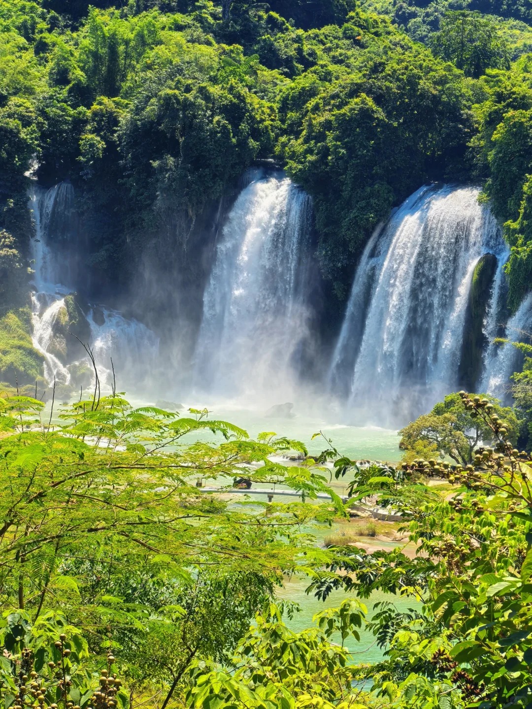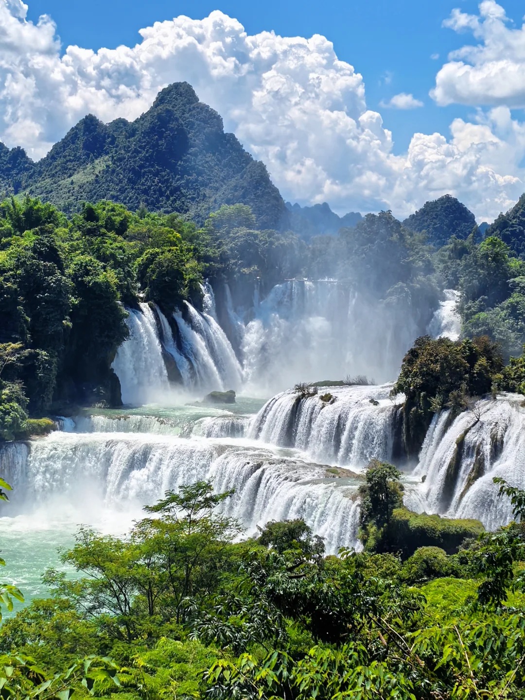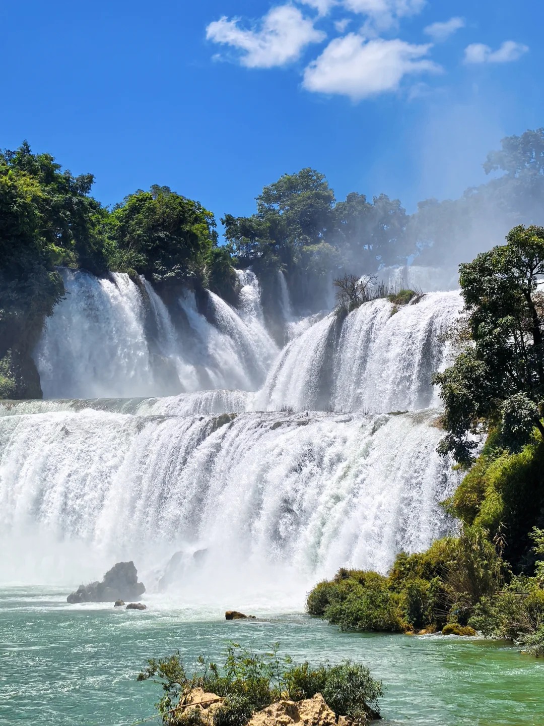 I took his advice and spent the next hour exploring the area slowly. I crossed the suspension bridge that offers a bird’s-eye view of the falls, feeling the wooden planks sway slightly under my feet as the mist sprayed my face. The air was cool and fresh, filled with the earthy scent of moss and the sweet fragrance of wildflowers growing on the cliffside. Further along the path, I found a hidden overlook where I could see both Detian and Ban Gioc clearly. A group of Vietnamese villagers were washing clothes in the river below, their laughter carrying across the water—a gentle reminder that this border is not a barrier, but a shared space where two cultures coexist.