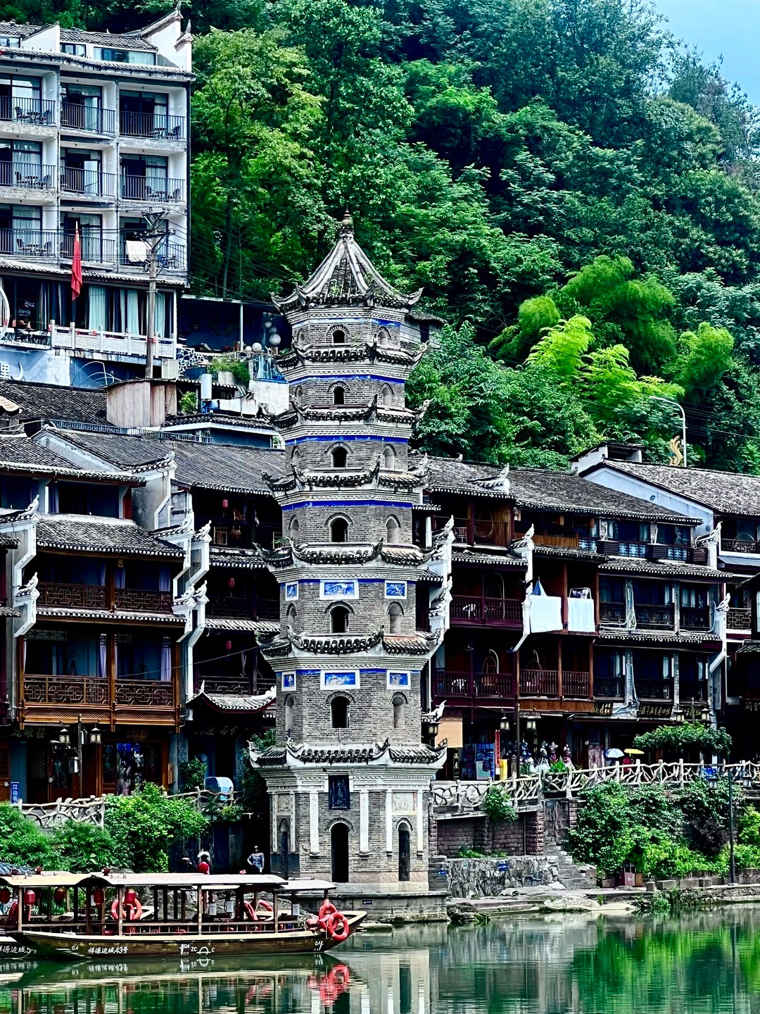 The town is built along the Tuo River, and its soul lies in the wooden stilt houses, or “Diaojiaolou,” that seem to grow directly out of the water. During the day, it’s picturesque and charming. I visited the former residence of the famous writer Shen Congwen, wandering through the quiet courtyards where ink and history seem to linger in the air. But the town has a split personality.