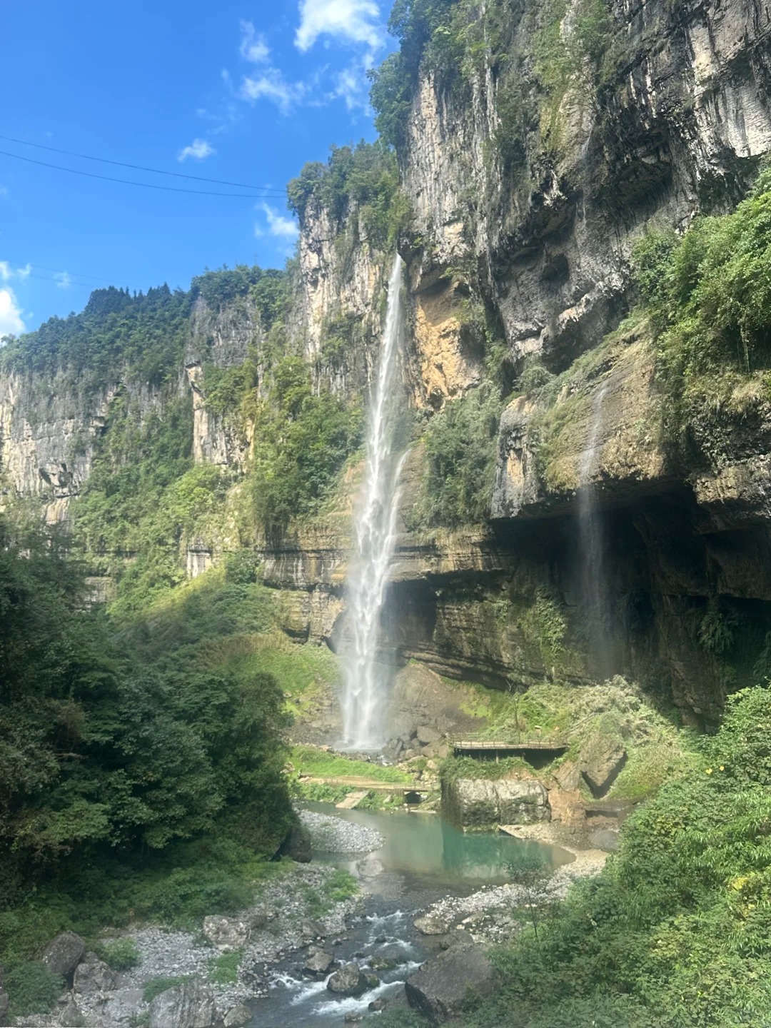 This concrete walkway clings to the vertical face of a 1,700-meter high cliff. There is no ground beneath you—just a sheer drop into the abyss. I hugged the cliff wall at first, refusing to look down. But the view demanded attention. The canyon floor was a tapestry of green fields and winding rivers, so far down they looked like a model train set.