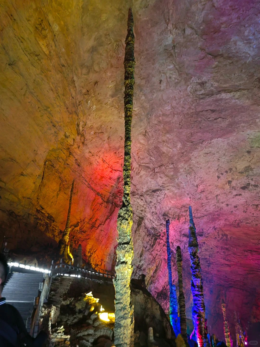 One of the most memorable moments of the visit was crossing the “Xianshi Bridge,” or Immortal Bridge. It is a natural stone bridge formed over millions of years by the deposit of calcite. Walking across it was nerve-wracking. Below, the darkness seemed infinite. The bridge is narrow and slippery, and as I小心翼翼地 made my way across, I couldn’t help but respect the immense power of water. Water, soft and yielding, had carved this hard rock over eons. It is a testament to persistence.