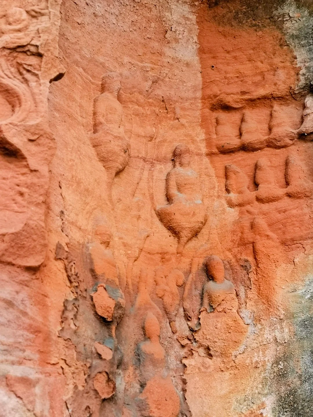 Standing next to his ear, which is seven meters long, was surreal. I looked at the stone. It’s not polished marble; it’s rough, textured red sandstone. You can see the layers of sediment that have settled over millions of years. I ran my hand along the railing (trying not to think about the sheer drop) and tried to imagine the workers over 1,200 years ago, hanging from ropes by the cliff face, chiseling away rock by rock. It is a feat of engineering that defies logic.