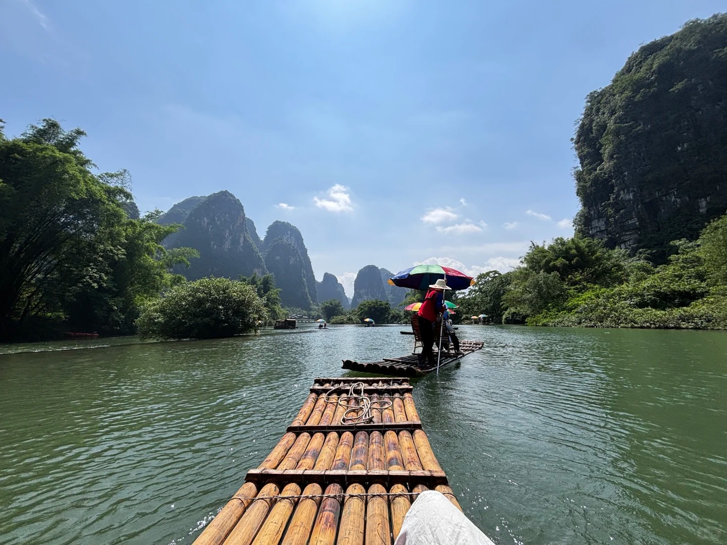 My Li River journey began in Yangdi, a small town located about 60 kilometers from Guilin. I boarded a traditional bamboo raft, which was steered by a local boatman named Uncle Liu. The raft was made of bamboo poles tied together, and it glided smoothly along the river. As we set off, Uncle Liu told me that the best time to sail the Li River is in the morning, when the mist is thick and the mountains look like they’re floating in the air. He was right—the mist hovered over the river, creating a dreamlike atmosphere. The only sounds were the gentle lapping of the water against the raft, the rustle of bamboo, and the distant call of birds.