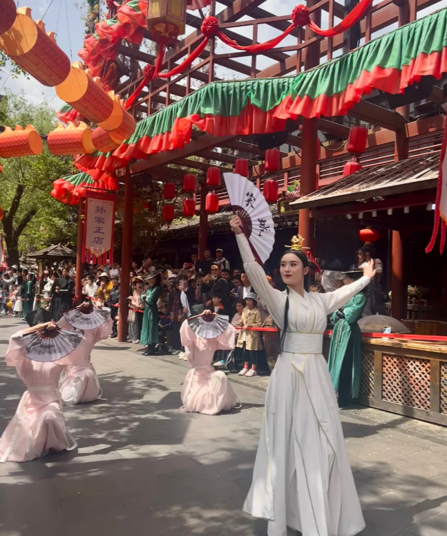 SongchengHighlights: Song Dynasty costumes (rent for 50 yuan/day), royal parade, “The Romance of the Song Dynasty” musical, traditional performances (shadow puppets, acrobatics).