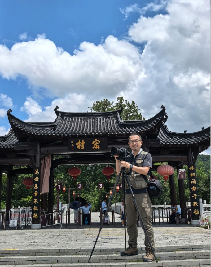 After visiting Chengzhi Hall, I walked to the South Lake (Nanhu), a long, narrow lake at the entrance of the village. A stone bridge crosses the lake, and willow trees line the banks. I rented a bamboo raft from an old man named Grandpa Wang, who’d been rowing rafts on the lake for 40 years. “Sit still, and I’ll take you to the best spot,” he said. He rowed slowly, using a bamboo pole to push against the lake bed, and the raft glided past lotus leaves (still small, in early April) and water birds. We stopped at a small island in the middle of the lake, and Grandpa Wang pointed to a house on the shore. “That’s where the movie Crouching Tiger, Hidden Dragon was filmed,” he said. I remembered the scene—Zhang Ziyi’s character practicing martial arts on a bamboo roof. I took photos of the house, its reflection in the lake, and Grandpa Wang rowing past with a straw hat on his head. “You’re the first Japanese photographer who’s asked to take my photo,” he said, grinning. “Most tourists just take photos of the lake.”