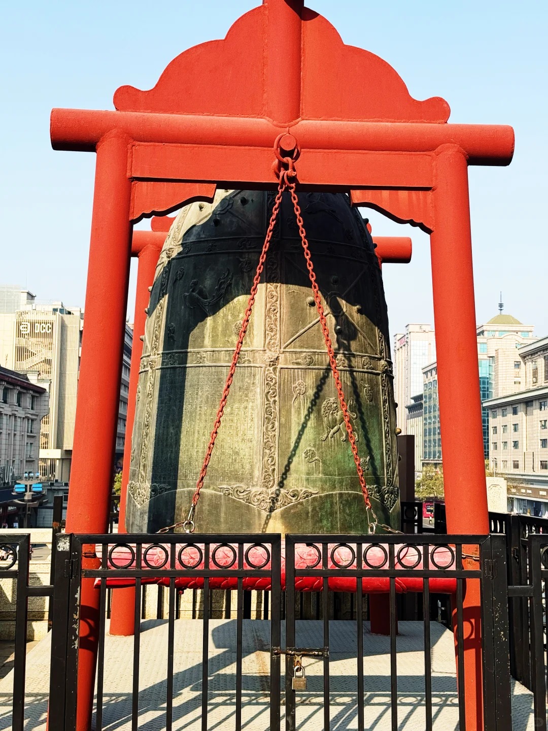 The original Jingyun Bell is now in a museum, but there is a massive replica on the northwest corner. For a small fee, I got to strike it. I held the heavy wooden log, suspended by ropes, and swung it.
