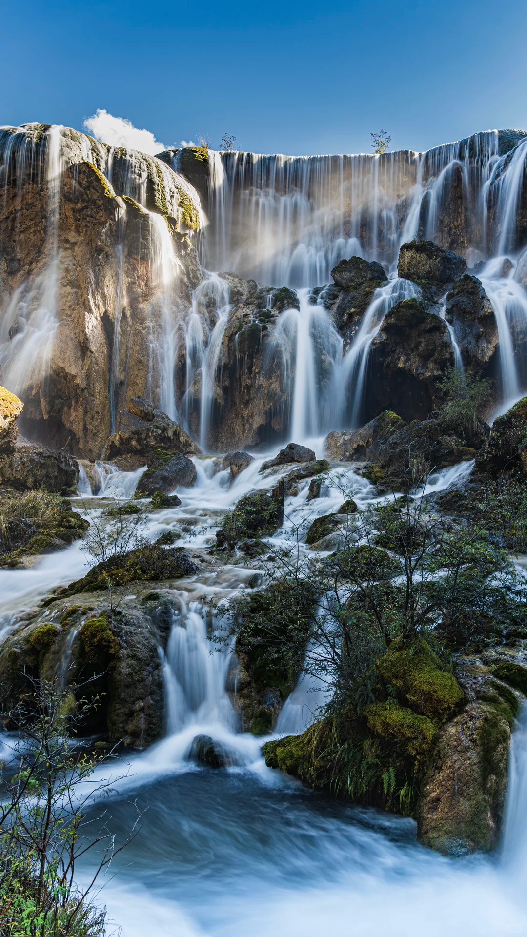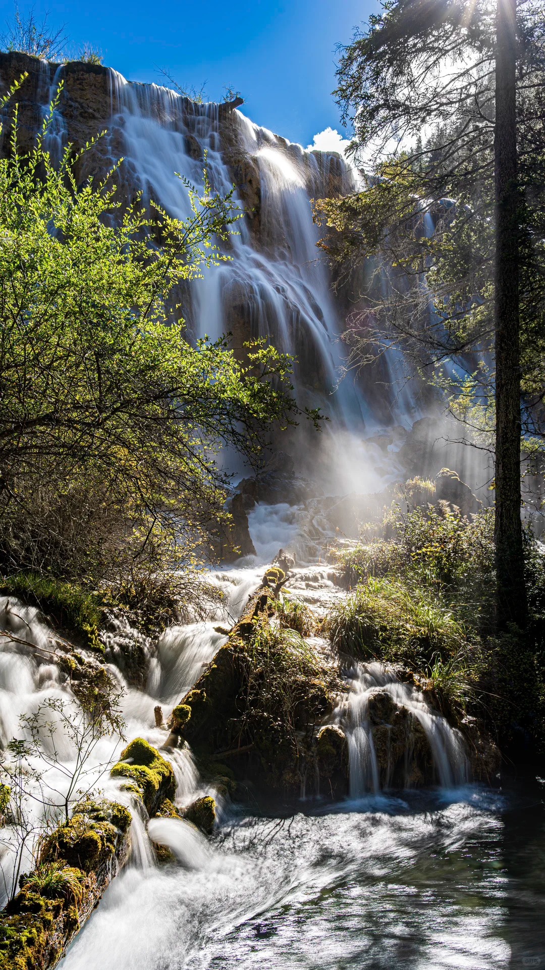 I also want to talk about the Pearl Shoal Waterfalls. You might recognize this place if you’ve seen the famous Chinese TV series *Journey to the West*. The water rushes over a wide slope that is dotted with “pearls”—small calcareous rings that trap the water, causing it to splash and bubble. Watching the water tumble down the 310-meter drop was exhilarating. The energy there is electric. I watched a group of Tibetan teenagers standing near the edge, laughing and shouting over the roar of the water, their colorful traditional clothes fluttering in the wind. It was a stark contrast to the quiet contemplation of Five Flower Lake, but it was equally beautiful. It showed me that nature is not just for silent meditation; it is also for joy, for noise, and for life.