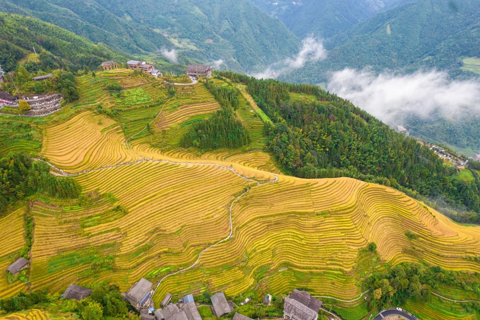 I’ve seen many beautiful landscapes in my travels, but nothing prepared me for the breathtaking beauty of the Longji Rice Terraces. Located in the mountains of Longsheng County, Guangxi, these terraces are a masterpiece of human ingenuity—carved into the mountainsides by the Zhuang and Yao people over 2,300 years ago. When I arrived in late September, the terraces were covered in golden rice, ready for harvest, and the mountains looked like they were wearing a cloak of gold. It was a sight that took my breath away.
