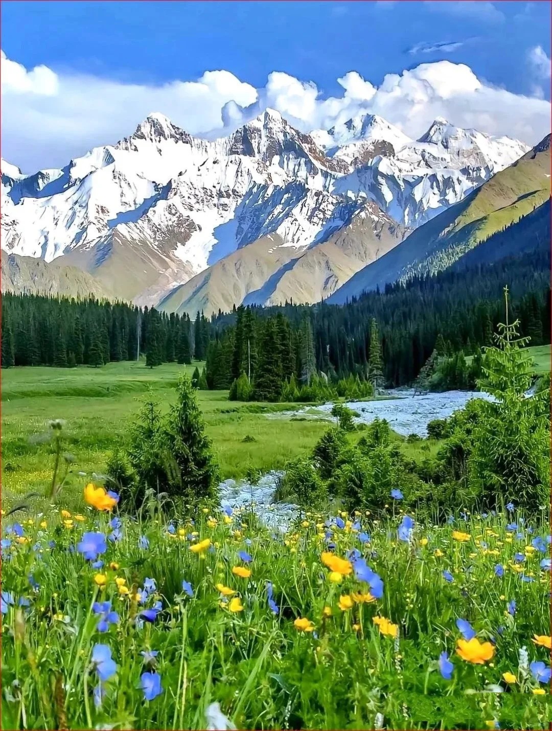 The Narat Grassland is one of the famous sub-alpine meadows of the world. It is located in the river valley, sandwiched between mountains. I have been to grasslands in Inner Mongolia, which are flat and stretch to the horizon. Narat is different. It is a landscape of slopes and ridges, of deep valleys and high peaks covered in pine forests. It feels like a landscape painted by a romantic poet.