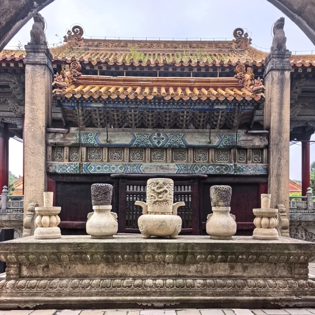 Behind the Dacheng Hall is the Baocheng, a circular earthen mound that covers the emperor’s tomb. The Baocheng is surrounded by a stone wall, and there are steps leading up to the top, where you can get a panoramic view of the entire mausoleum. As I climbed the steps, the mist began to lift, and I could see the pine trees stretching out in all directions, their green leaves contrasting with the gray stone walls. From the top, the mausoleum looked like a peaceful oasis in the middle of the city, a place where time stands still.