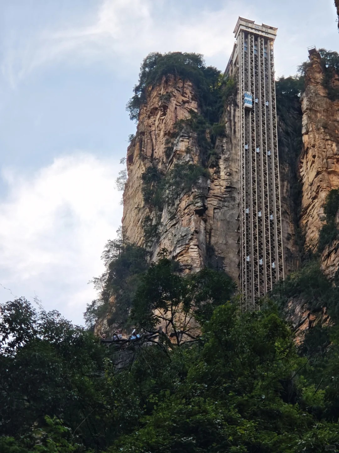 I have taken elevators in office buildings, hotels, and malls, but I had never taken an elevator that goes inside a mountain until I visited Zhangjiajie. The Bailong Elevator, or the “Hundred Dragons Elevator,” is one of those structures that defies logic. It is a glass elevator built onto the side of a massive sandstone cliff, rocketing visitors 326 meters straight up in less than two minutes. To call it an engineering feat is an understatement; it looks like something straight out of a sci-fi movie.