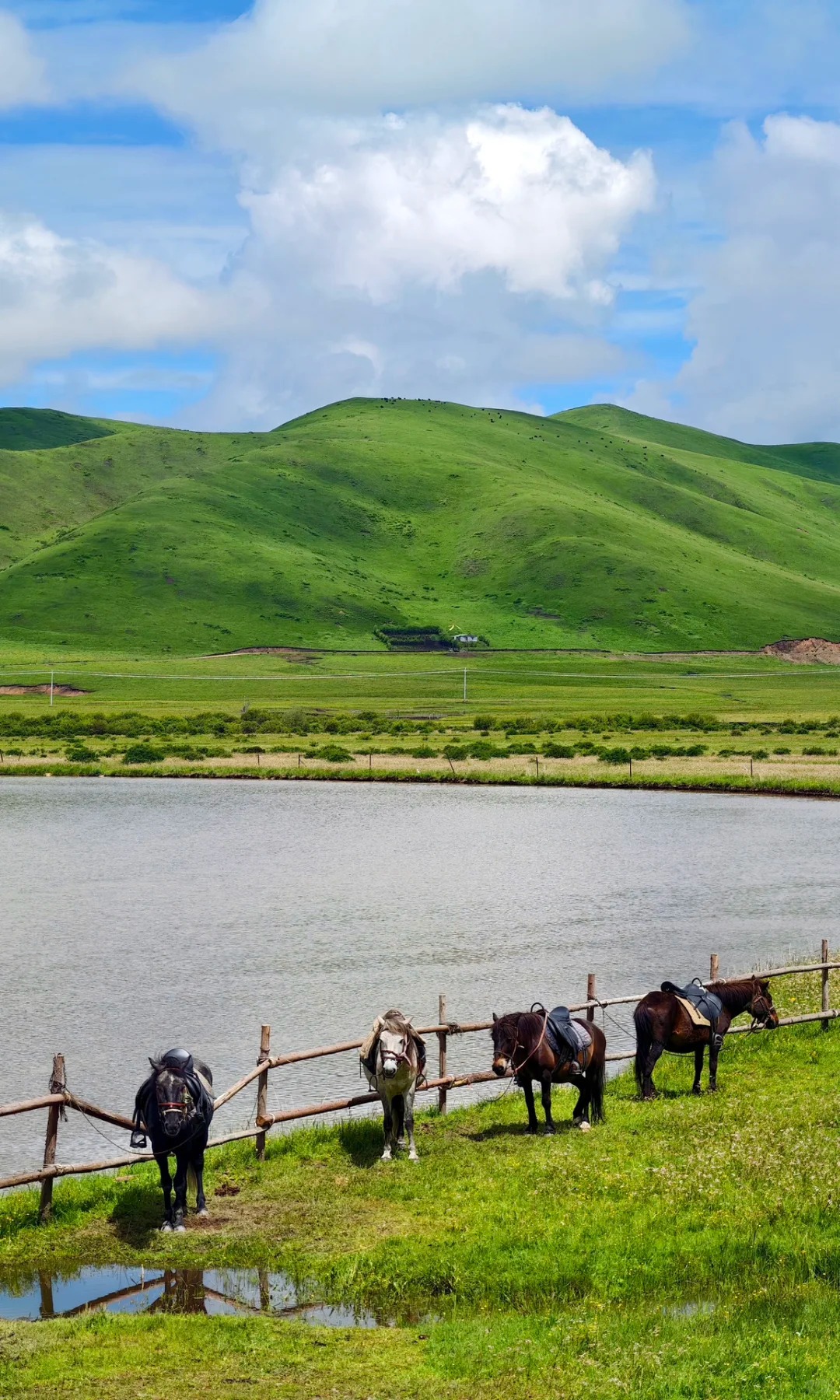 The next morning, I woke up early to visit the Flower Lake (Huahu). This is a protected wetland within the grassland. The boardwalk stretches out into the lake for kilometers. When I arrived, the water was still like a mirror. The lake is shallow, creating a perfect reflection of the sky and the clouds. Walking out into the middle of the lake, with water on both sides of the boardwalk, felt like walking on water. It is a bird-watcher’s paradise. I saw black-necked cranes, a protected species, standing elegantly in the reeds. Their call is haunting and resonant. The water is so clear you can see the fish swimming below and the plants swaying in the current. In July and August, the lake is surrounded by blooming wildflowers—purple, yellow, and white dots covering the green marsh. It is colorful and vibrant, like a patchwork quilt thrown over the earth.