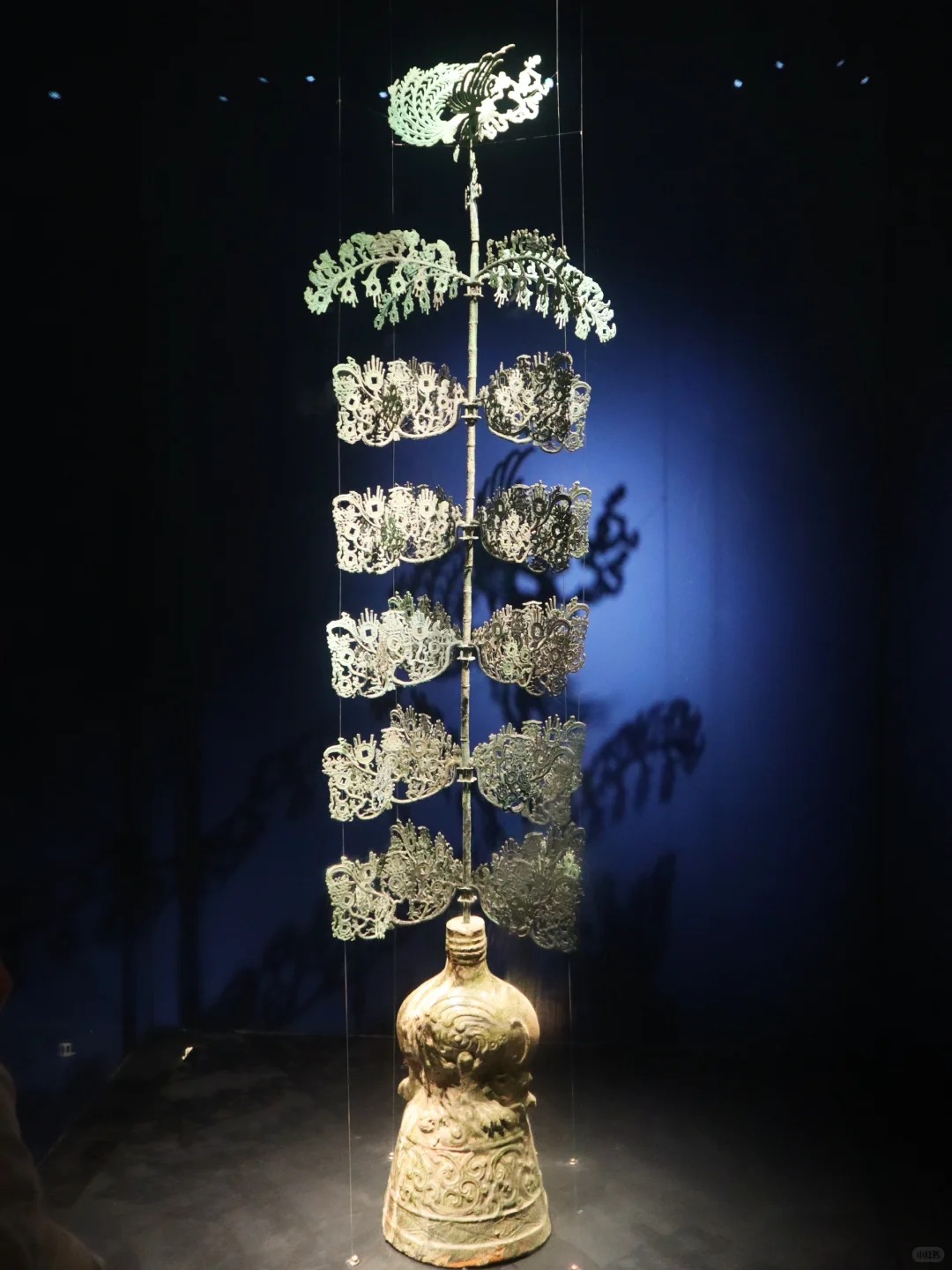 The moment I stepped into the main exhibition hall, the atmosphere changed. The lighting is dim, dramatic, focusing all attention on the bronze objects standing in silence. I walked toward the first gallery, and there it was—the Bronze Divine Tree. It is nearly four meters tall, held up by a complex support structure because it is too heavy to stand on its own trunk. My eyes traveled up the nine branches, where birds perch, gazing in different directions. In ancient Chinese mythology, birds carried the sun. Seeing this tree, cast in bronze over 3,000 years ago, I felt the weight of their cosmology. It wasn’t just art; it was a machine for communicating with the heavens.