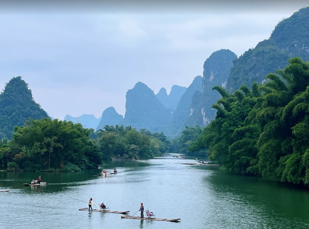 - Bamboo Rafting: For a closer connection to the water, take a motorized bamboo raft from Yangdi or Xingping.