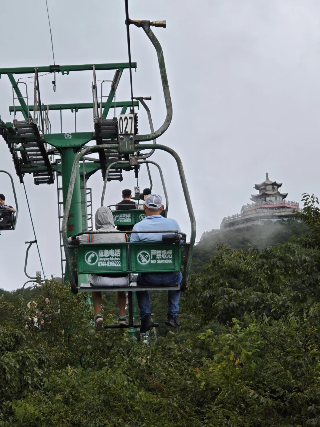 The cable car passes over sections that are terrifyingly high. At one point, we were dangling over a sheer vertical drop that must have been hundreds of meters deep. The support pylons looked like matchsticks from our vantage point. I saw a maintenance worker walking along a service path on one of the pylons, hundreds of feet in the air, casually checking the cables. My heart skipped a beat just watching him; it put my own fear into perspective.