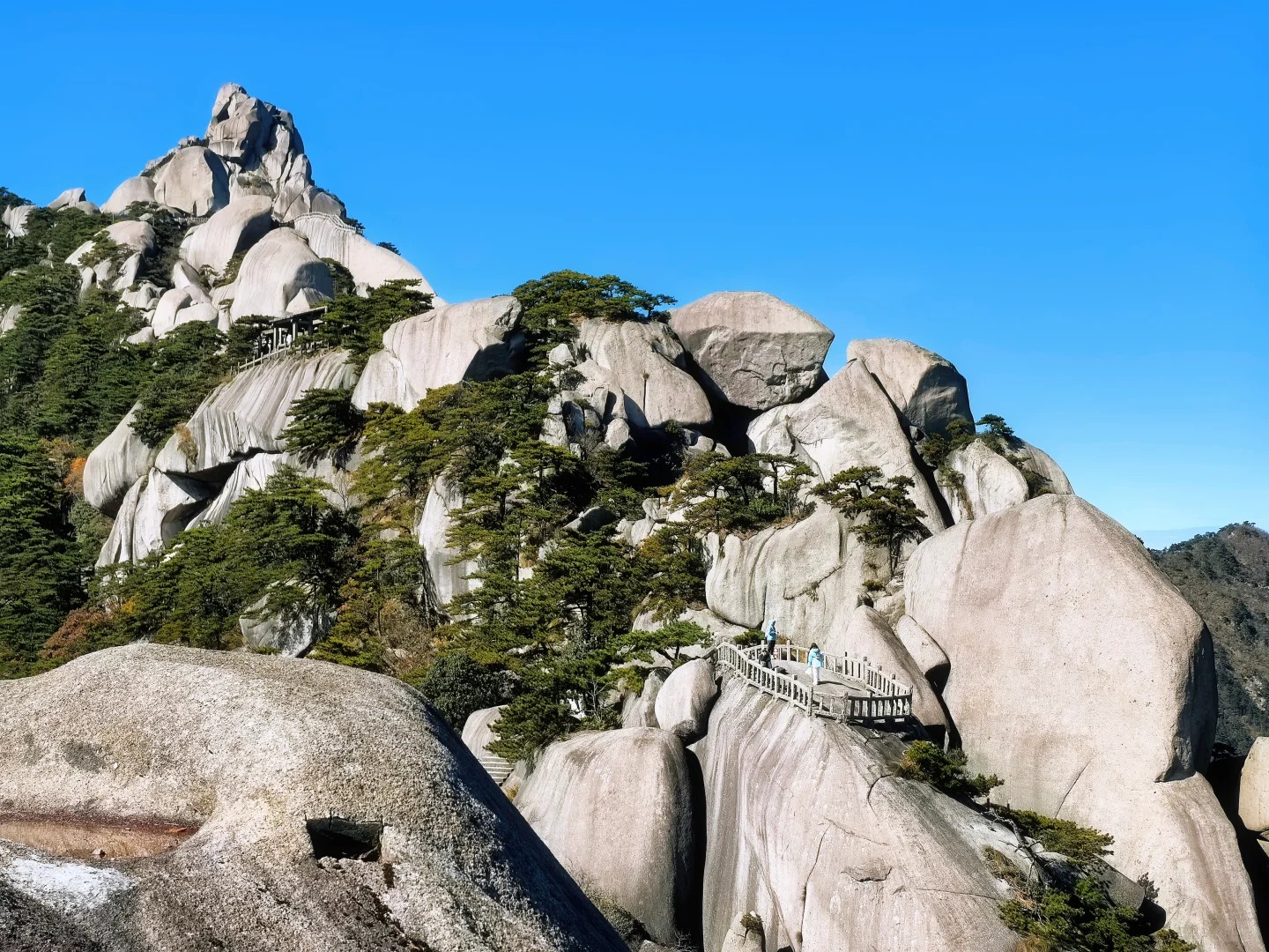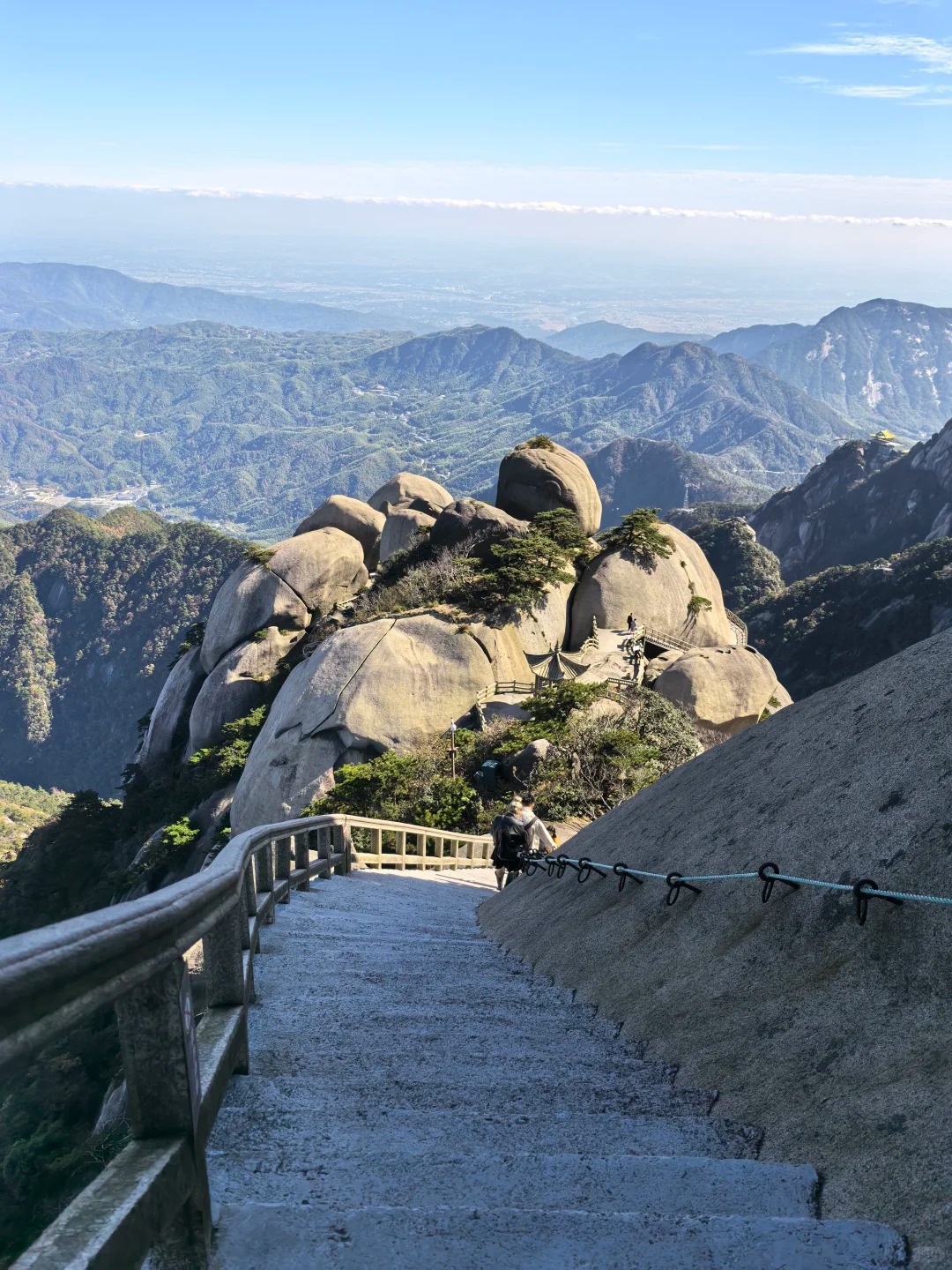 Tianzhushan is a granite mountain range in Qianshan City, Anhui Province, covering over 486 square kilometers. What makes it special is the granite itself—sharp, rugged peaks that rise straight out of the green valleys, their surfaces marked by millions of years of wind and rain. I started my journey at the foot of the mountain, taking the cable car up to the main scenic area. The cable car ride was smooth, and as we ascended, I watched the landscape change—from rice paddies and villages to dense forests and granite outcrops. A little boy sitting next to me pointed out Tianzhu Peak, its shape like a giant pillar reaching for the sky. “That’s the king of the mountain,” he said, and his father laughed.