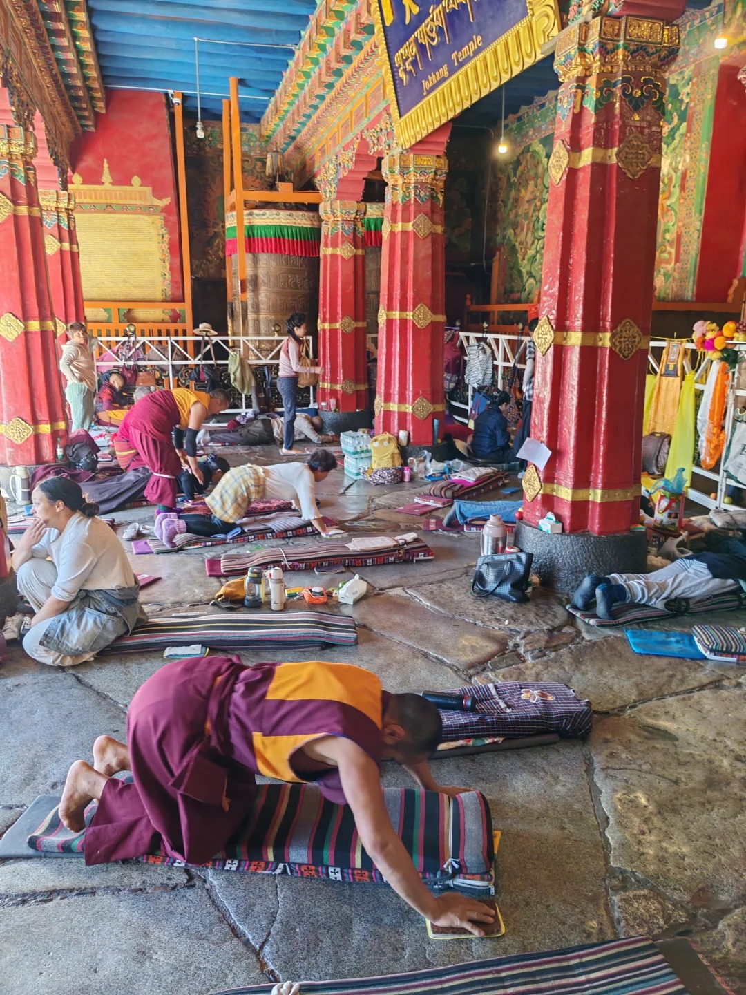 I went there at dawn. The square in front of the temple was filled with pilgrims. Some had walked for months, prostrating themselves every few steps—body flat on the ground, arms stretched out, marking the earth with their forehead. The sound of their wooden hand-guards sliding on the stone pavement—shhh-clack, shhh-clack—is a sound I will never forget.