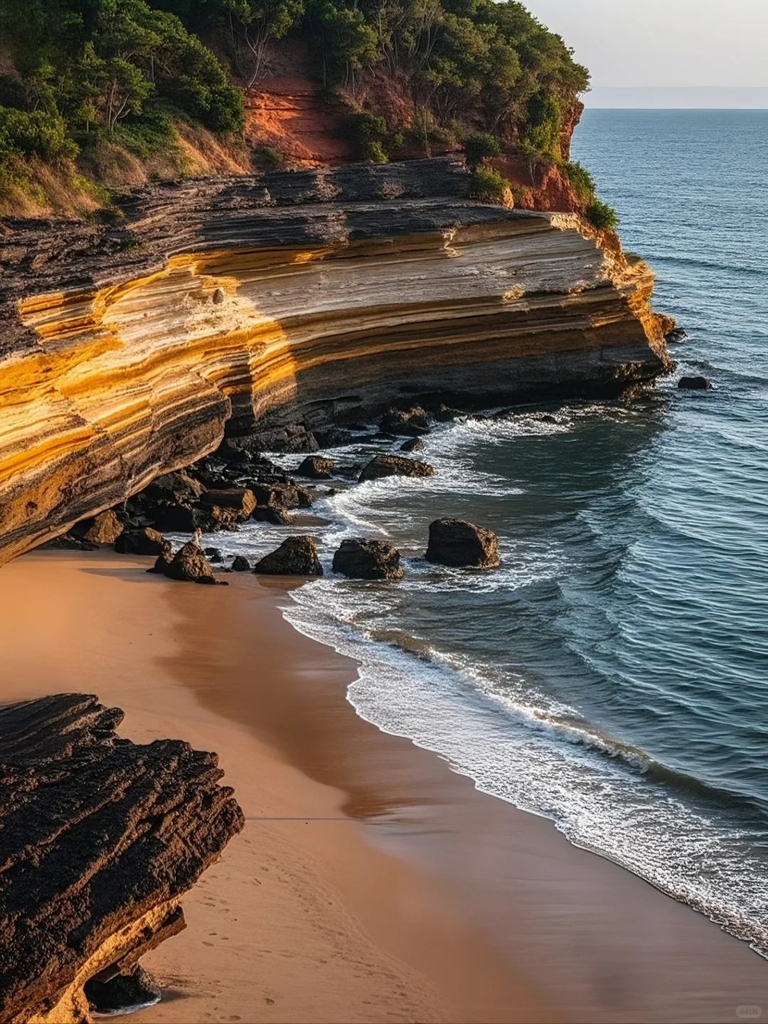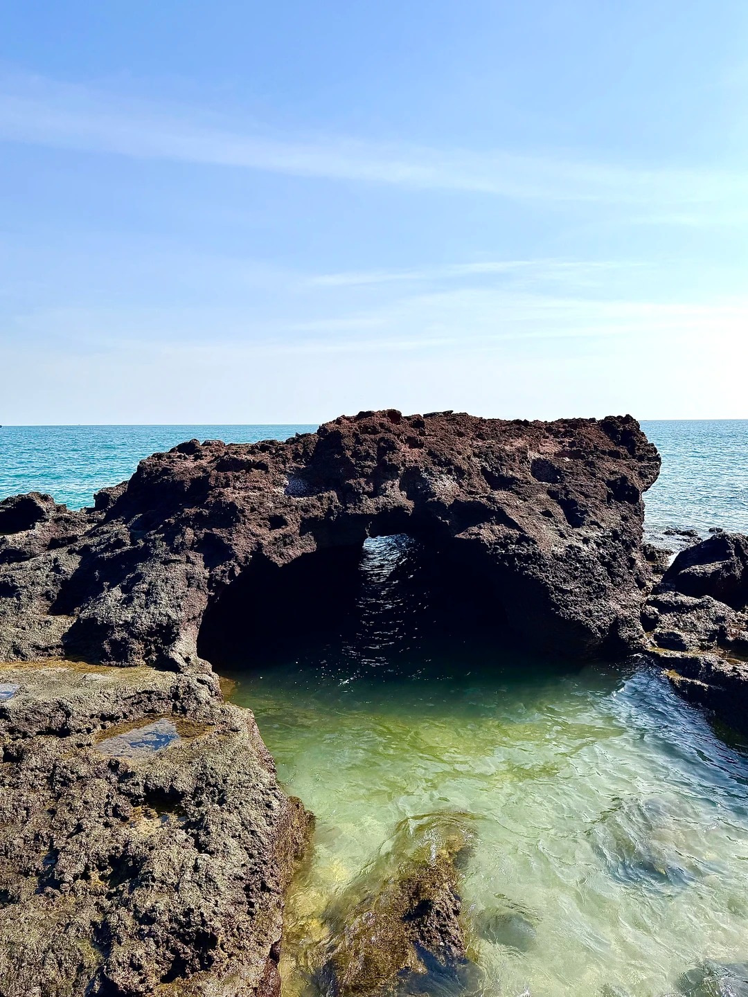 After breakfast—fresh seafood congee and fried squid balls from a nearby stall—I rented an electric scooter, the best way to get around the island. The roads on Weizhou are narrow and winding, lined with coconut trees and bougainvillea that bloom in vibrant shades of pink and purple. As I rode, I passed by small farms where locals grew pineapples and bananas, and by traditional stone houses with red tile roofs, a signature of Weizhou’s architecture. My first stop was the Weizhou Island Volcanic Geopark, where I explored the volcanic craters and lava flows that shaped the island millions of years ago. The rocks here are black and jagged, a stark contrast to the white sand and blue sea nearby. I climbed to the top of the crater and looked out at the island below—a patchwork of green fields, blue sea, and small villages. It was a breathtaking view, a reminder of the earth’s raw power and beauty.