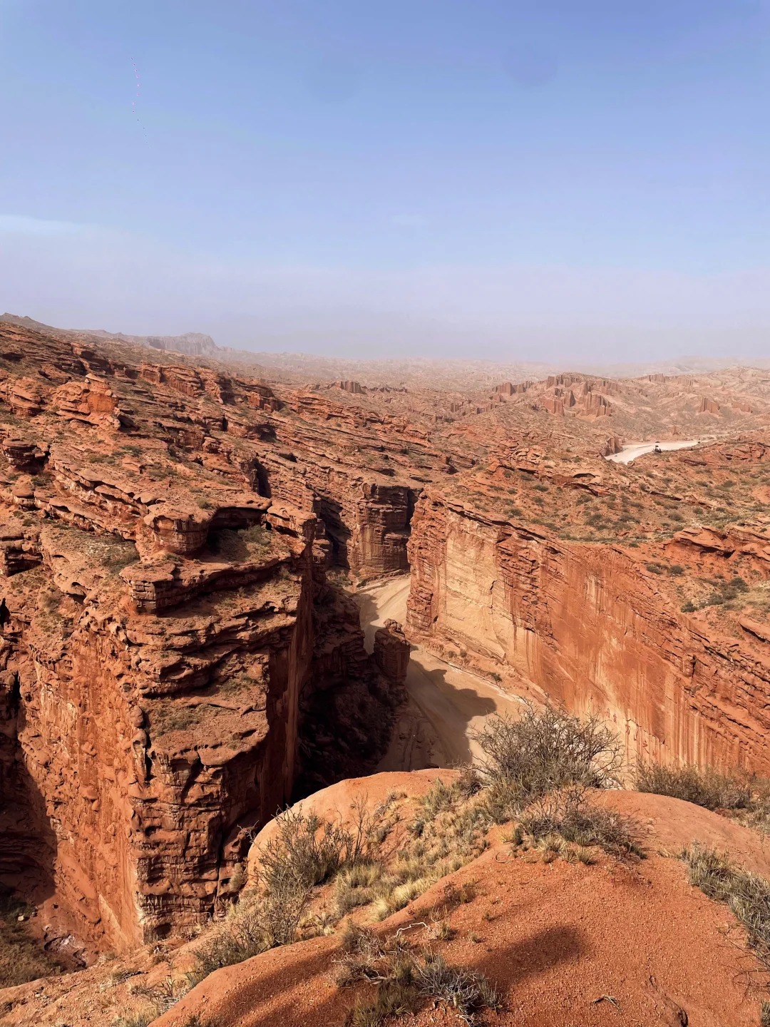 In the main canyon, the scale is overwhelming. There are pillars of rock standing isolated, known as “earth forests” or “yardangs.” They stand like sentinels, watching over the empty valleys. I climbed a steep ridge to get a panoramic view. From up there, the canyon looked like a giant delta, a network of channels converging and diverging. The red dust coating my shoes and clothes made me feel like part of the landscape. I felt like an explorer discovering a lost world.