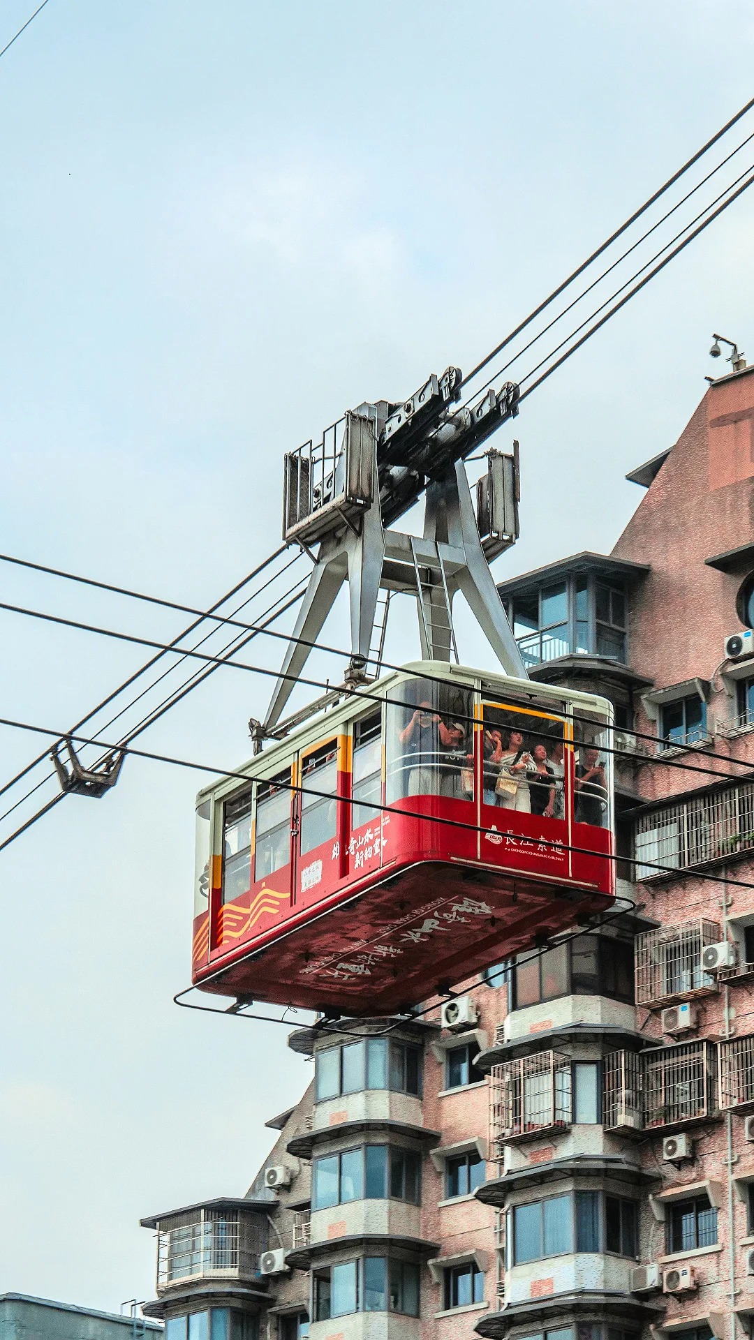 A child next to me squealed, "Look, a boat!" snapping me back to reality. I opened my eyes. We were approaching the Nan'an district. The buildings here were older, grittier. I saw laundry hanging from balconies that seemed dangerously close to the cable line. I saw a man on a rooftop tending to his pigeon coop, completely indifferent to the metal box of tourists flying past his house.