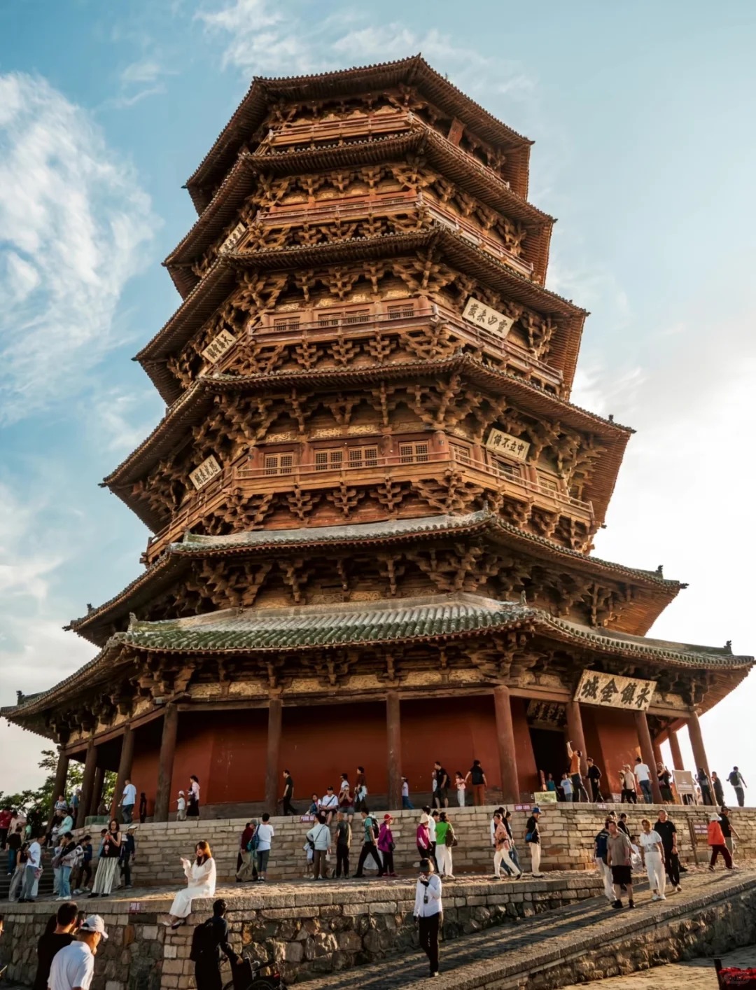 I have seen many stone monuments in China, but wood is different. Wood has a soul. It breathes, it creaks, it ages with a grace that stone cannot match. This is what I told myself as I stood in the small town of Yingxian, staring up at the Fogong Temple Wooden Pagoda. Known as the Sakyamuni Pagoda, it is the oldest and tallest all-wooden pagoda in the world. It does not use a single iron nail.
